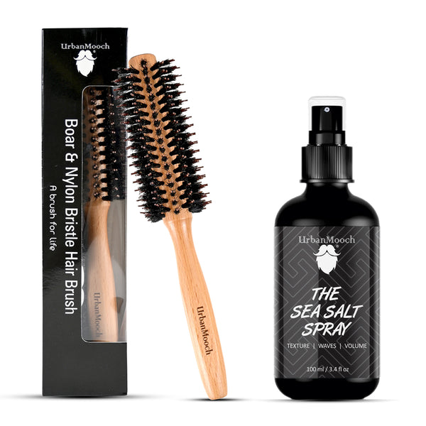 Get effortlessly styled, textured hair with the UrbanMooch Hair Styling Combo for Men. This set includes a professional boar bristle round brush for smooth control and a Sea Salt Spray that adds natural volume, texture,...