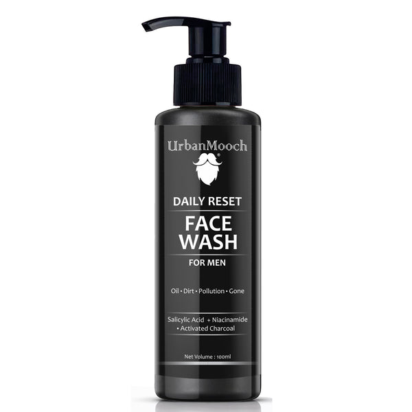 UrbanMooch Daily Reset Face Wash for Men with Charcoal, Salicylic Acid & Niacinamide – Gel Based Oil Control Cleanser