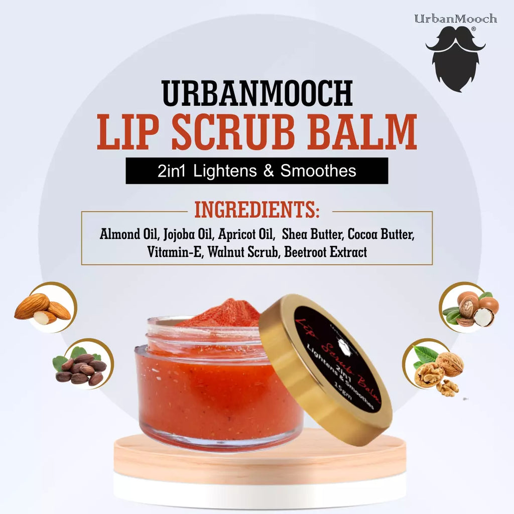 UrbanMooch 2 in 1 lip scrub balm gently exfoliates and penetrates deep into the lip's skin to give you soft and glossy lips. Made with natural and ayurvedic ingredients like Shea butter, beeswax, beetroot extract, and natural oils, this lip scrub reduces pigmentation and tanning. The natural ingredients present in this product will hydrate and deeply nourish your lip skin.