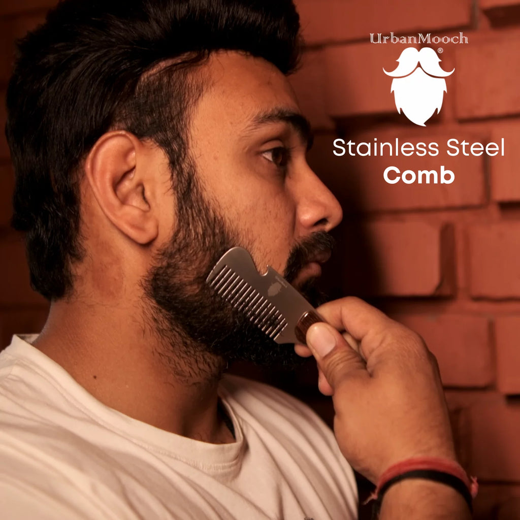 UrbanMooch's Stainless Steel Beard Comb is the perfect choice. The long teeth detangle tough matted hair, while the fine teeth evenly spread oil and product throughout the beard. With a total length of 5 inches and detachable handle, this comb fits comfortably in your pocket, making it perfect for travelling. Keep your beard looking good anytime, anywhere with this dependable, easy to maintain, stainless steel beard comb.